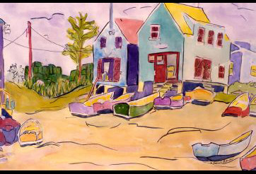 watercolor artist; plein air painter of seascapes and landscapes; accept commissions for portraits of individuals,pets, homes, and gardens;design speciality business cards;