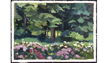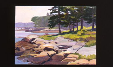 Debra Yoo paints landscapes and still lifes in a painterly realist style that incorporates a direct painting approach, a focus on light and color, and strong composition. Subjects include Maine coastal and woodland sites, the Alps, and studio still lifes with richly patterned elements.