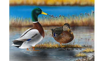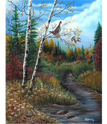 Georgette Kanach of Gray, Maine is an artist who creates masterpieces that embody the natural beauty of her great state. Born and raised in Jackman, Maine, Georgie is a self taught artist, with over 30 years of experience. Her lifelong love of nature is truly demonstrated in all her many works of art. Georgette''s artwork spans the range from two-dimensional paintings to relief carving, to airbrushing, and jewelry making. She works with natural mediums such as wood, antler, feathers and eggs, as well as glass, metal, and automobiles, not to mention conventional painting with oils and acrylics. Her hand-carved wood railings and mantelpieces are a specialty that adorn many beautiful homes. Georgette has been honored with numerous ribbons for her Egg and Wood carvings. The United States Postal Office has commissioned her work for commemorative postal seal and cancellation stamps. She has won first place in the State of Maine Migratory Waterfowl Stamp contest in 2009 and has received 2nd place twice. She also was named Artist of the Year for 2009 for the Ruffed Grouse Society and so the winter magazine cover was her painting, Autumn Delight. Her achievement as a Master Maine Guide was truly inspired by her desire to share her love of nature. Georgette now works at her studio in Gray, where she enjoys creating one of a kind pieces. ''I always remember loving Art and nature; it is a great gift that was given to me, and so by combining two loves of my life I am able to share them both in the art that I produce. I do what I love and love what I do.''