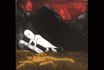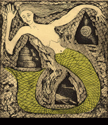 A series of vivid dreams led Cynthia to pursue narrative imagery through the medium of intaglio printmaking. She also creates functional hand weaving for her business The Dancing Blanket. See her website for more details.