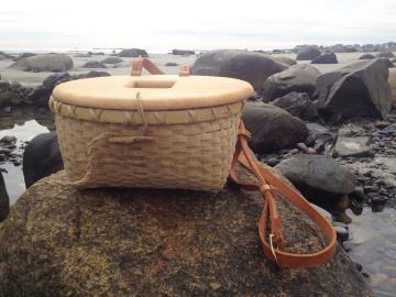 Each black ash pack basket is a work of art crafted by hand in the traditional Native American style. All baskets start with the sustainable harvesting of Black Ash trees in Maine. After harvesting the perfect tree, the wood is pounded releasing natural growth rings which create the strong and rugged weaving materials that make each basket. All baskets are hand woven creating a extremely strong, durable, and functional basket that will become a family heirloom to be passed down for generations.